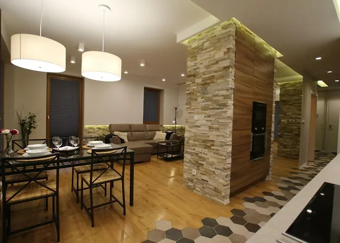Apartament "Park Lotnikow" dairesi, bahçe manzarasına sahiptir ve Oskar Schindler'ın Emaye Fabrikası çevresinde bulunmaktadır. Daire 67 m^2lik olup 2 yatak odası, 1 banyo ve mutfağa sahiptir.